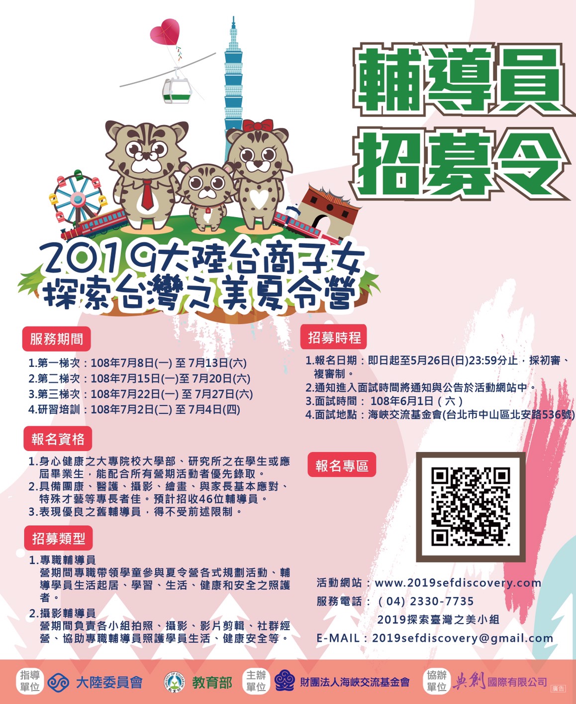 海基會辦理「2019大陸臺商子女『探索臺灣之美』夏令營」輔導員開始招募囉!