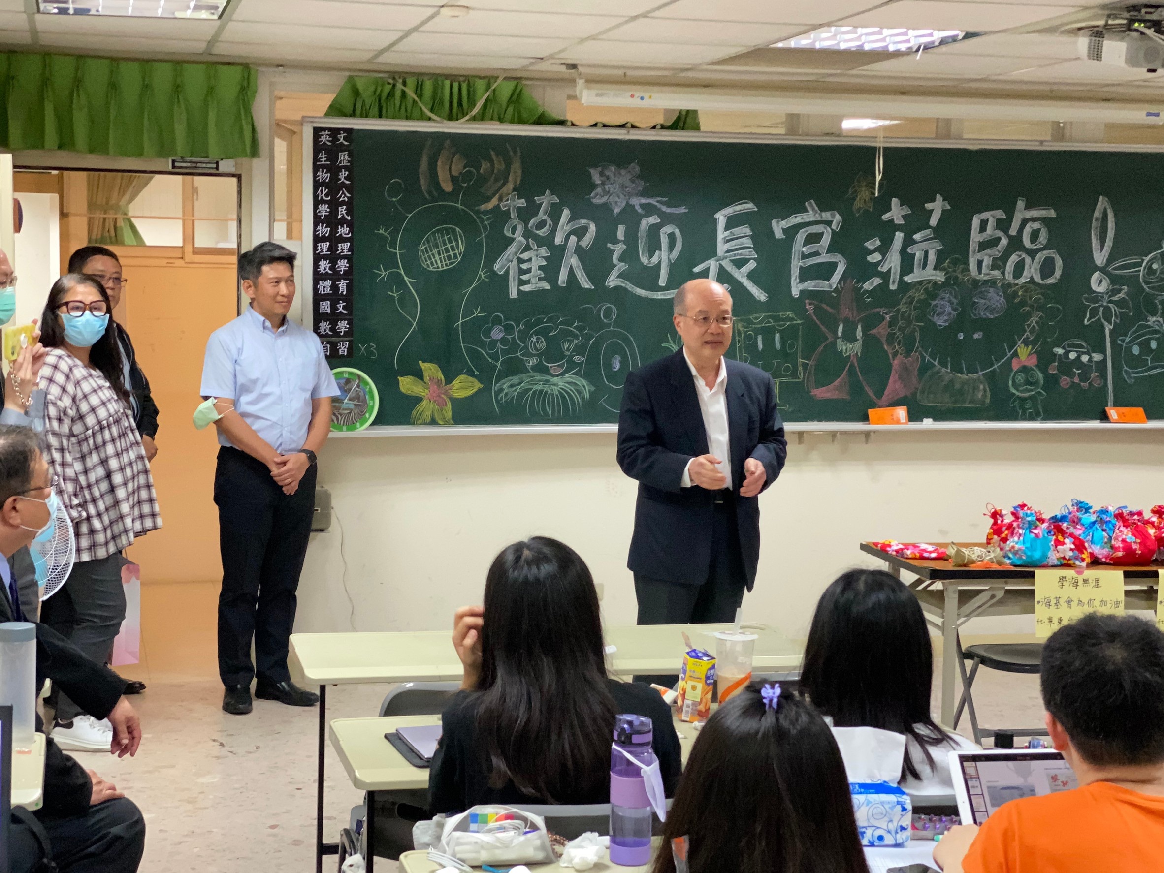 今日關懷華東臺校「高三臺灣班」,華東臺校執行長陳大勇、中華大學游坤明副校長等陪同參與。