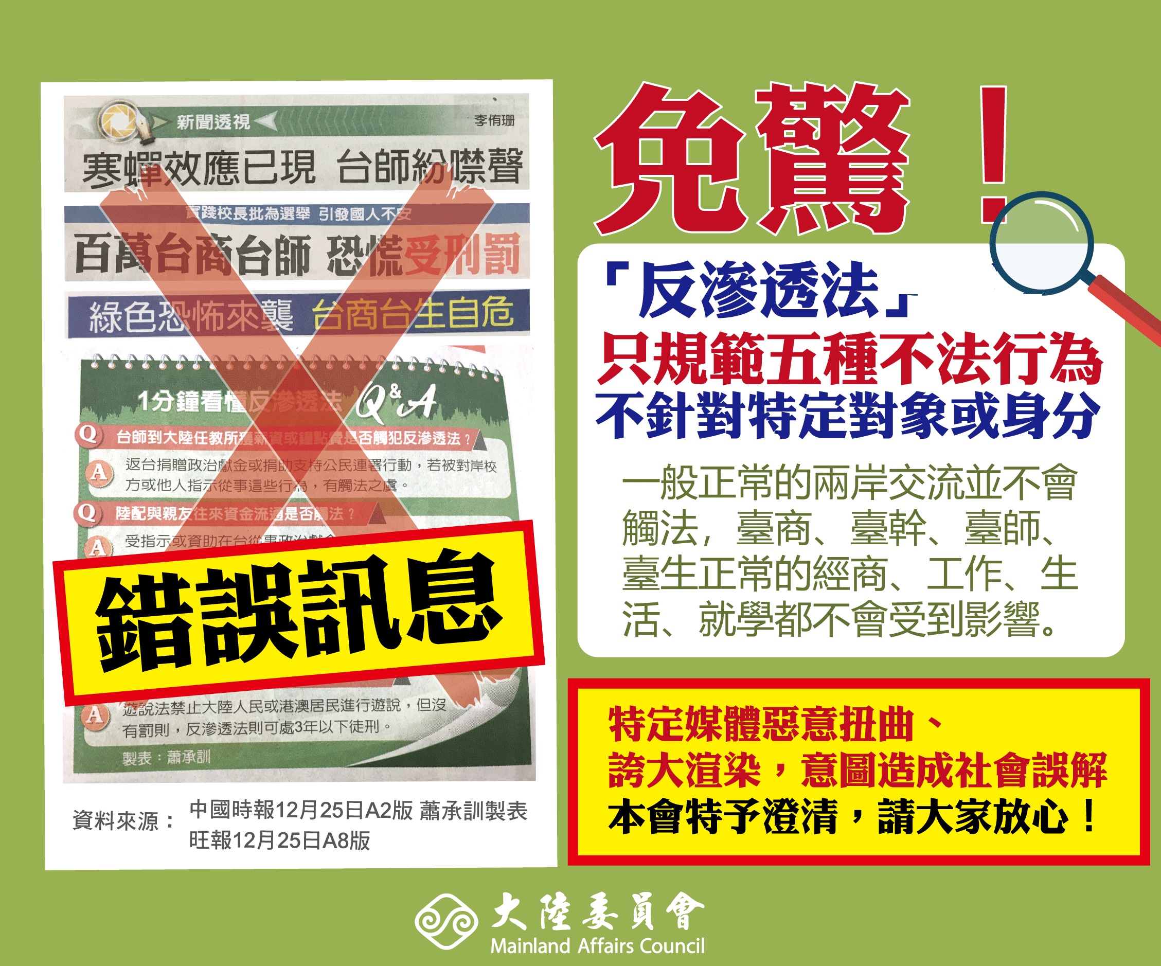 轉知陸委會有關反滲透法宣導圖卡及QA
