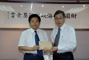 海協會馬曉光副秘書長同時說,為轉達該會對高雄縣甲仙鄉小林村災民的關懷與慰問,這次來台代表海協會捐贈三萬美金給小林村聊表心意,此筆捐款由高副董事長代表接收轉交。