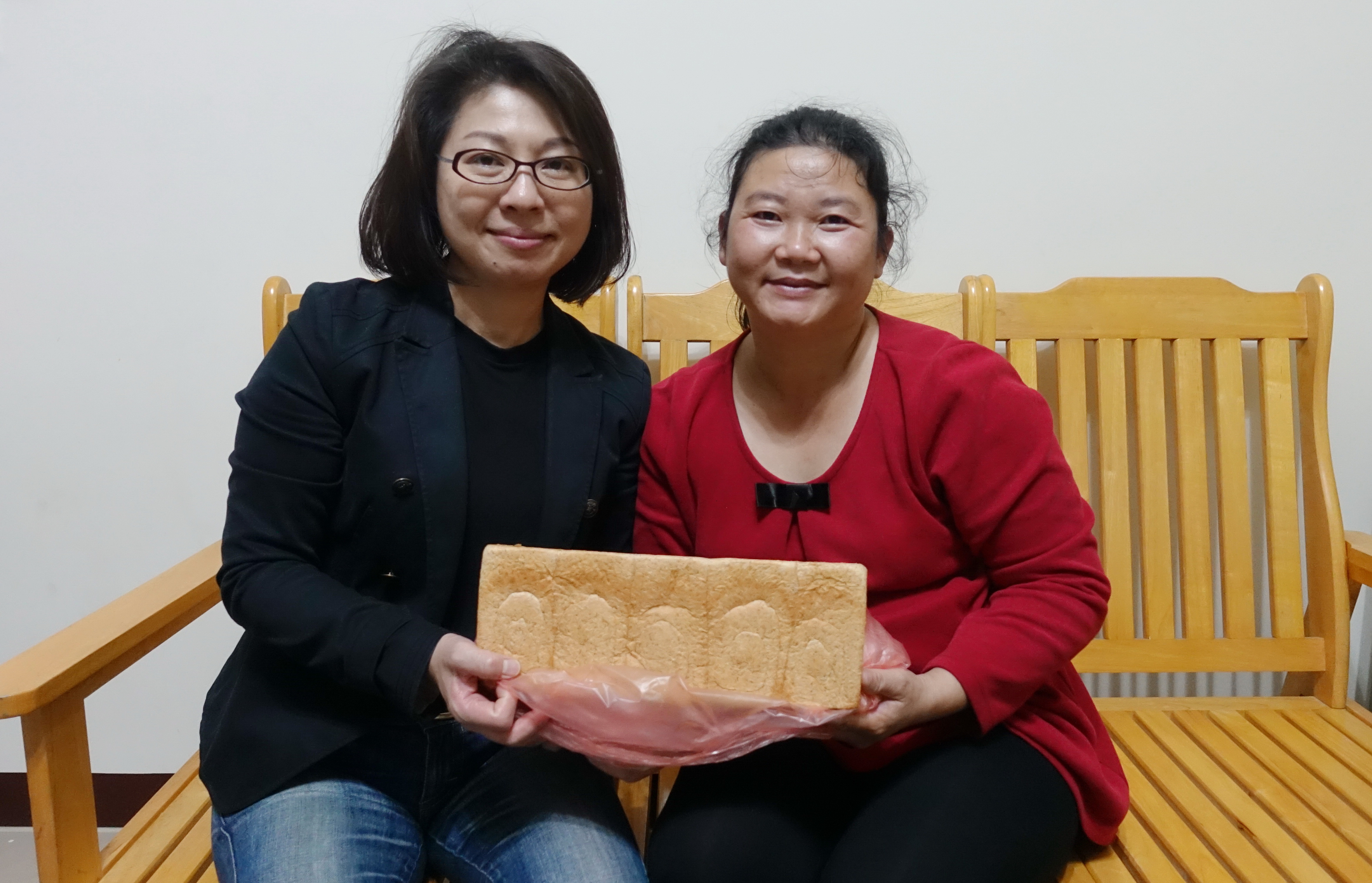 受到疫情影響,陳女士遭到裁員,四處找工作碰壁,目前透過職訓局的課程學習麵包烘焙。蔡孟君傾聽並關切她這段期間的生活狀況,也鼓勵期勉她很快就能取得烘焙師傅證照。若有遇到問題或困難,海基會都會盡力來提供協助。陳女士招待大家親手製作的吐司麵包與千層酥,大夥吃了都讚不絕口。