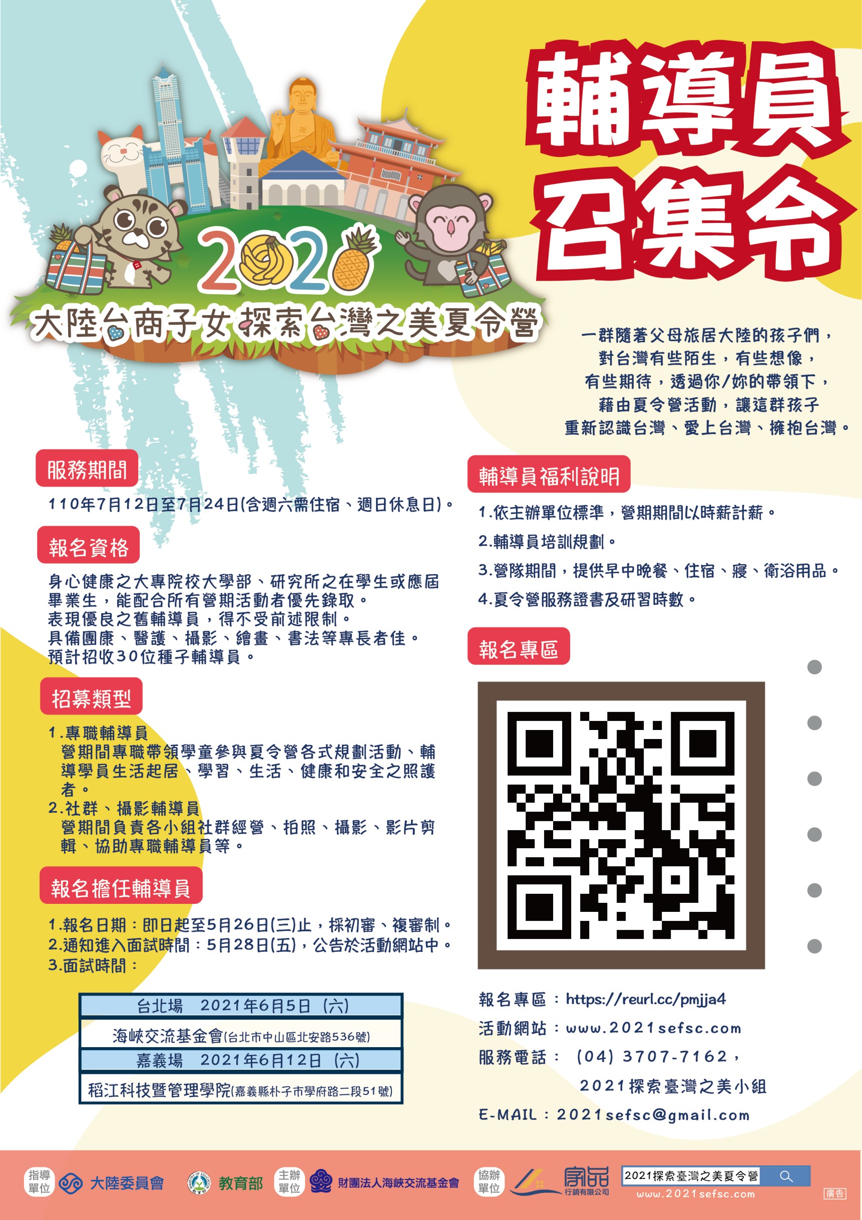 2021大陸臺商子女探索臺灣之美夏令營輔導員招募