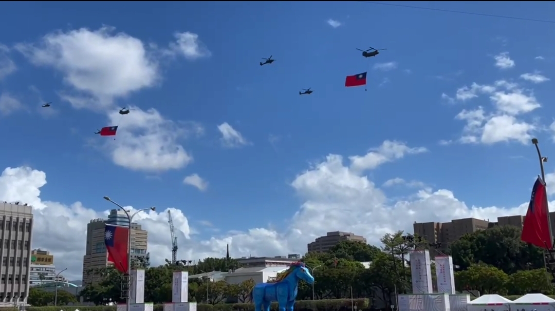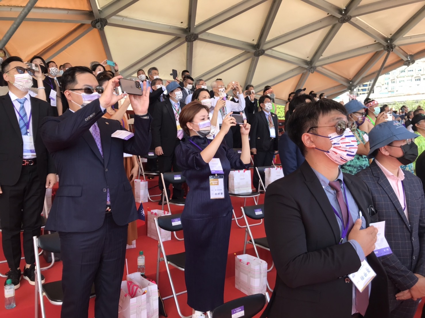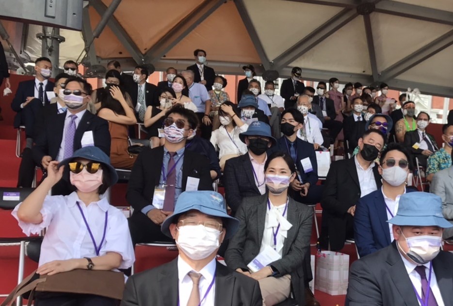 無畏炙熱驕陽,青年臺商們與眾人一起搖旗歡呼,大聲齊唱國歌,