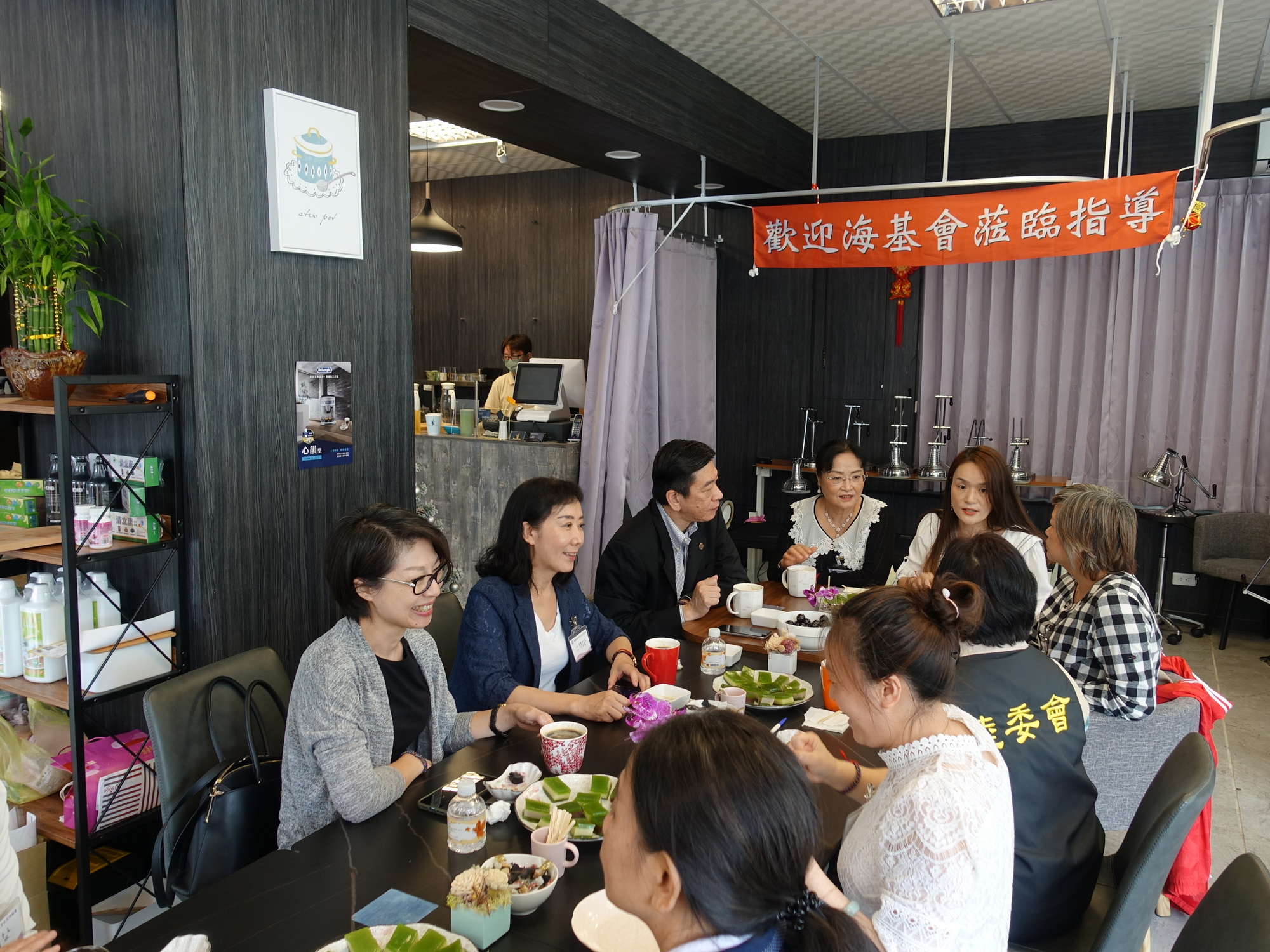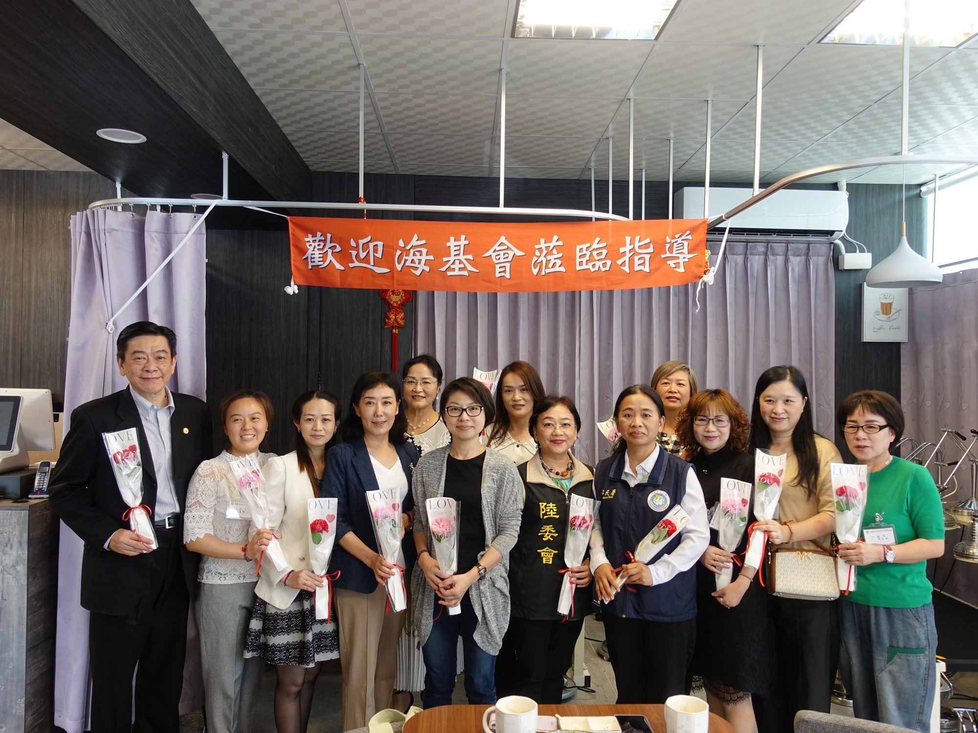 母親節前夕,海基會與陸委會、移民署前往桃園市平鎮、大溪,拜會「桃園市新住民文化交流協會」,前往由陸配經營的JC精彩鹿咖啡、川耗仔食府與眾生老人長照中心等地。