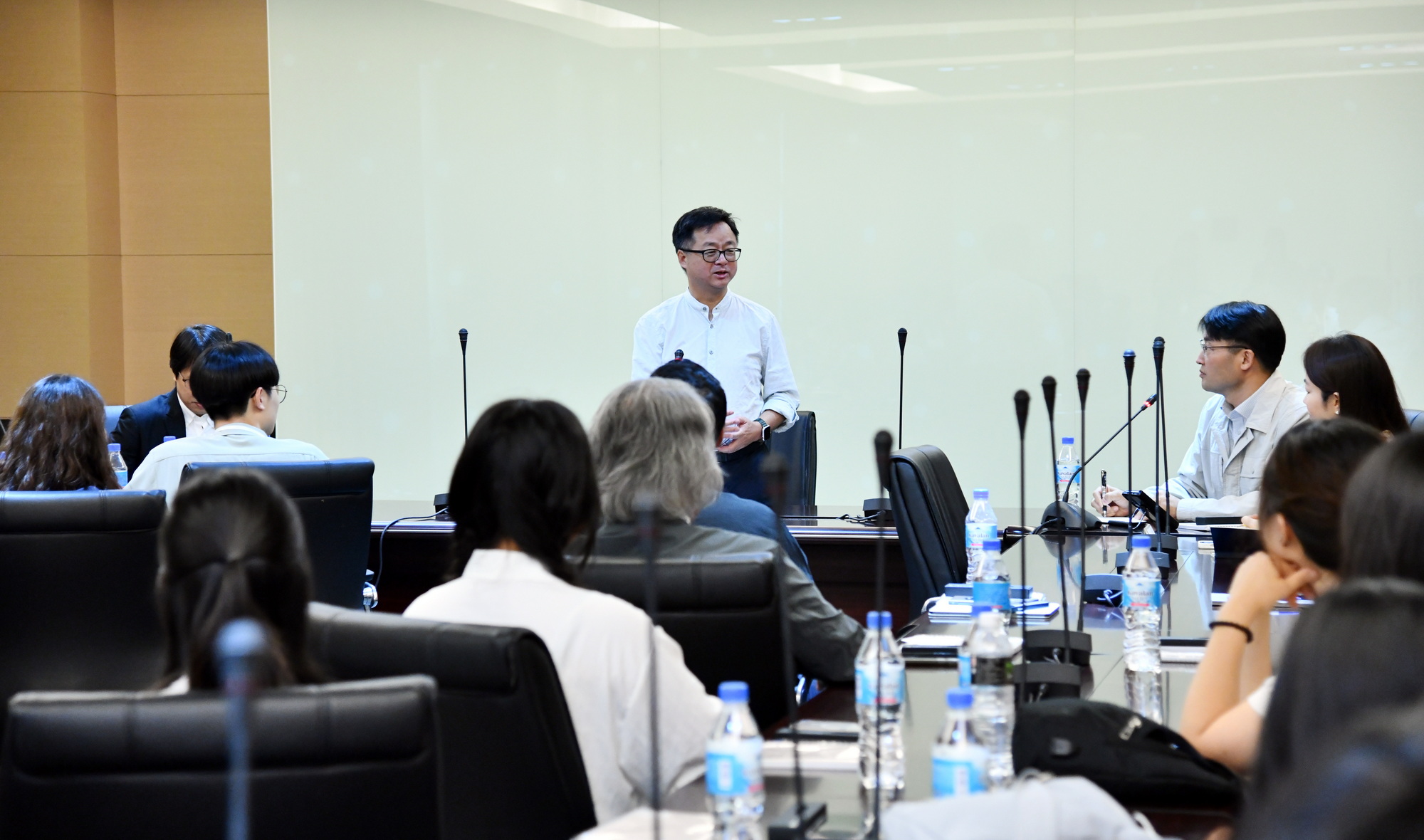 海基會羅文嘉秘書長今(6)日在黎寶文副秘書長陪同下,接見韓國NGO「青年和平大使」等20多位來自韓國多所大學政治學系、社會學系的學生,針對兩岸關係現況、民主自由價值等議題交換意見。