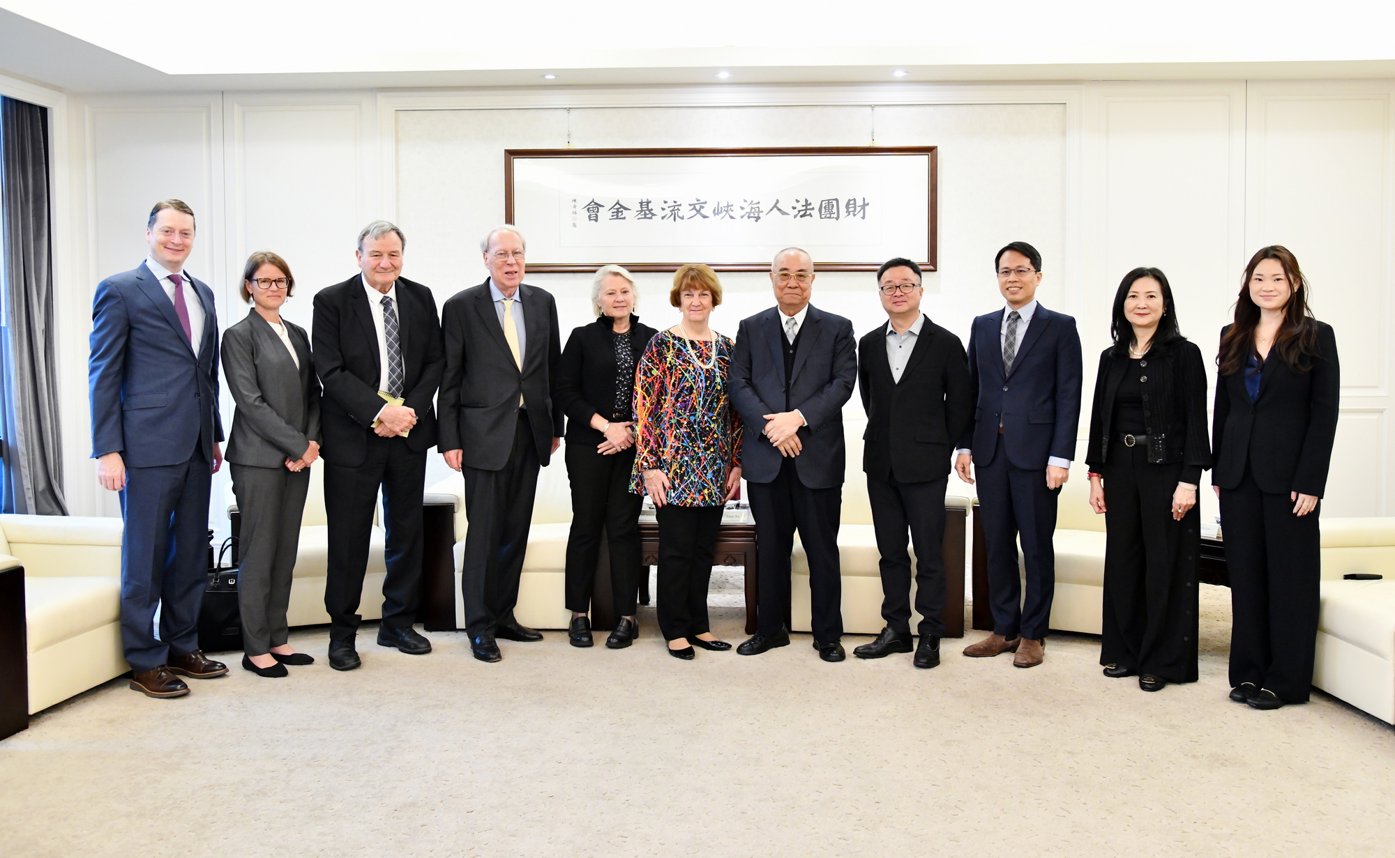 該訪問團繼去年造訪海基會後,今年再次來訪,盼能聽取重要觀察與建議。此次訪團成員包括該會亞太安全論壇計畫主任董雲裳(Susan A. Thornton)、史汀生研究中心特聘資深研究員艾江山(Karl Winfrid Eikenberry)、太平洋世紀研究所所長薄瑞光(Raymond F.Burghardt)、Macro Advisory Partners 諮詢公司合夥人貝沙蘭(Sarah Beran)、布魯金斯研究院中國中心兼台灣研究講座何瑞恩(Ryan Hass)、亞太安全論壇資深計畫經理史芭蔓(Emily Sparkman)。