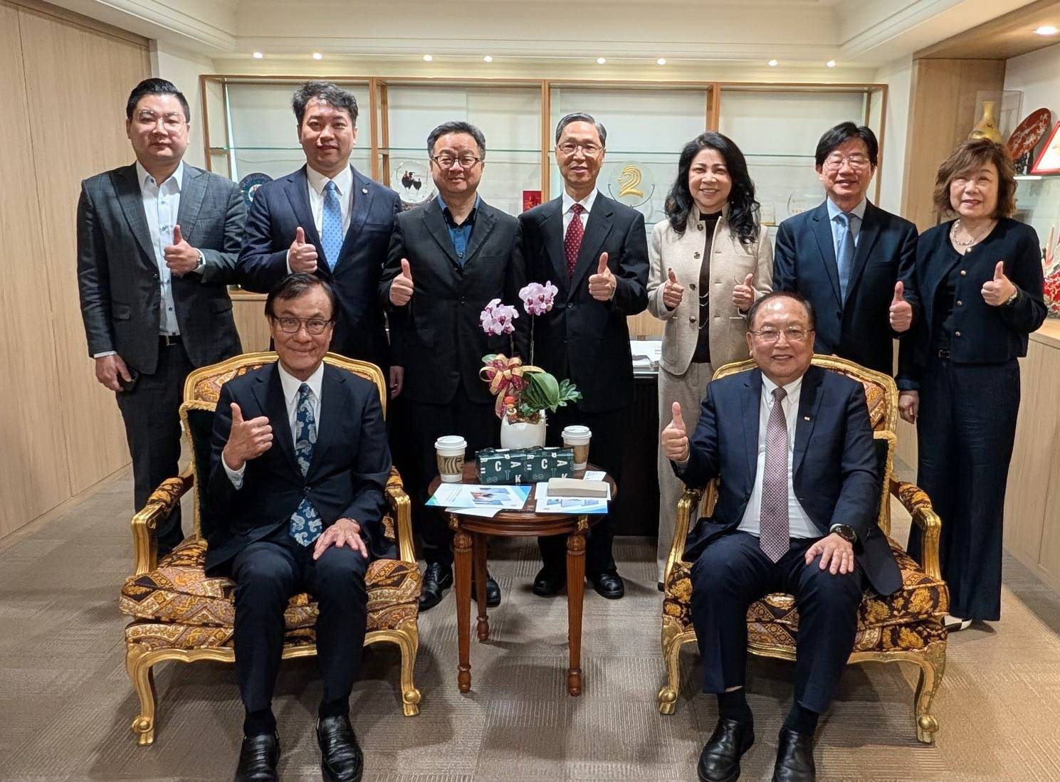 海基會蘇嘉全董事長於本(115)年2月26日上午拜會中小企業總會李育家理事長、林坤榮監事長、歐淑芳副理事長、林倬立副理事長及該會林芬岑秘書長等人。