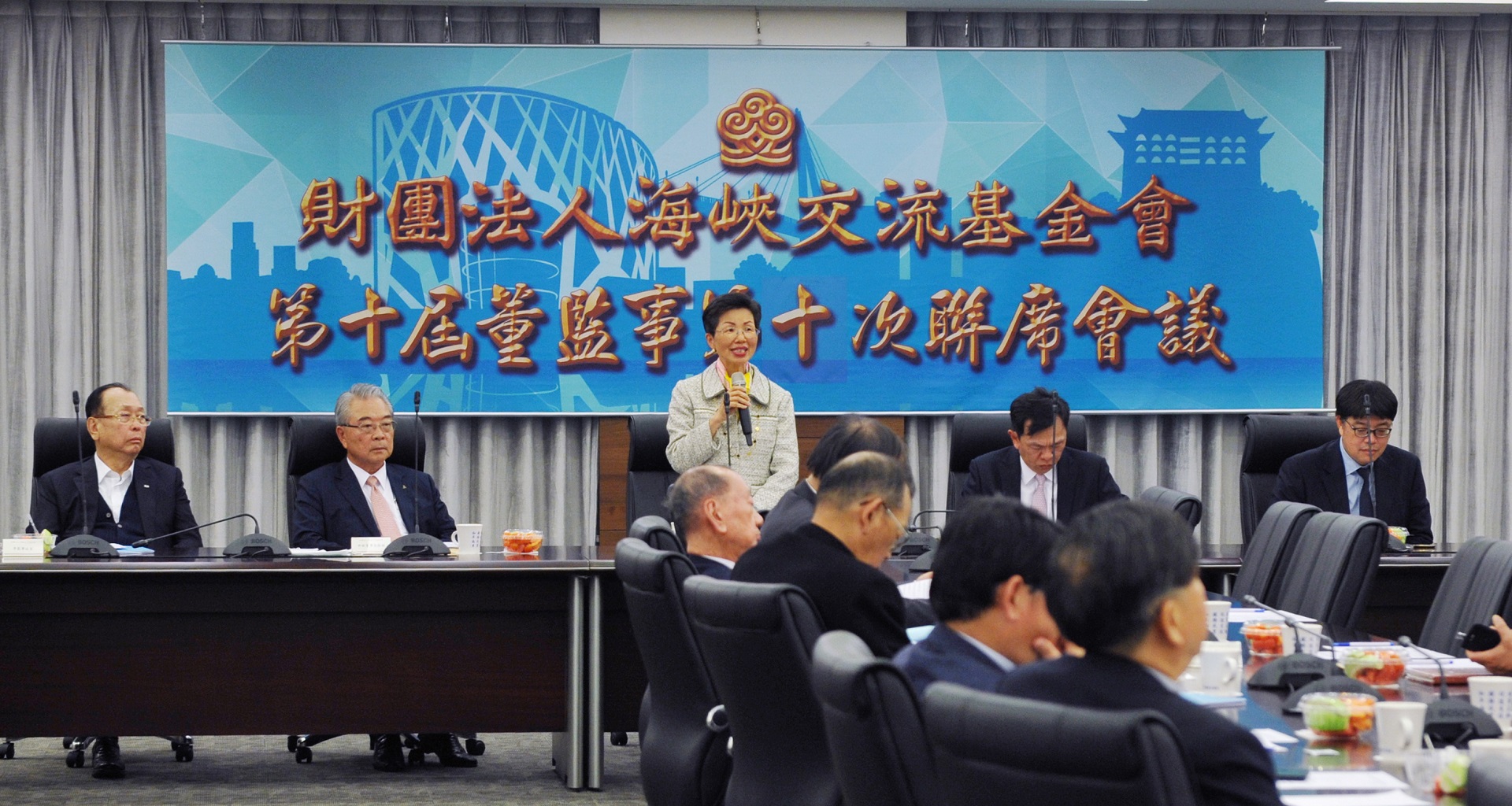 姚副董事長兼秘書長、許副董事長、邱副董事長、李監事、陸委會法政處蔡處長、各位董監事、各位媒體朋友大家好。非常歡迎大家在百忙之中,撥冗出席海基會第十屆董監事第十次聯席會議。