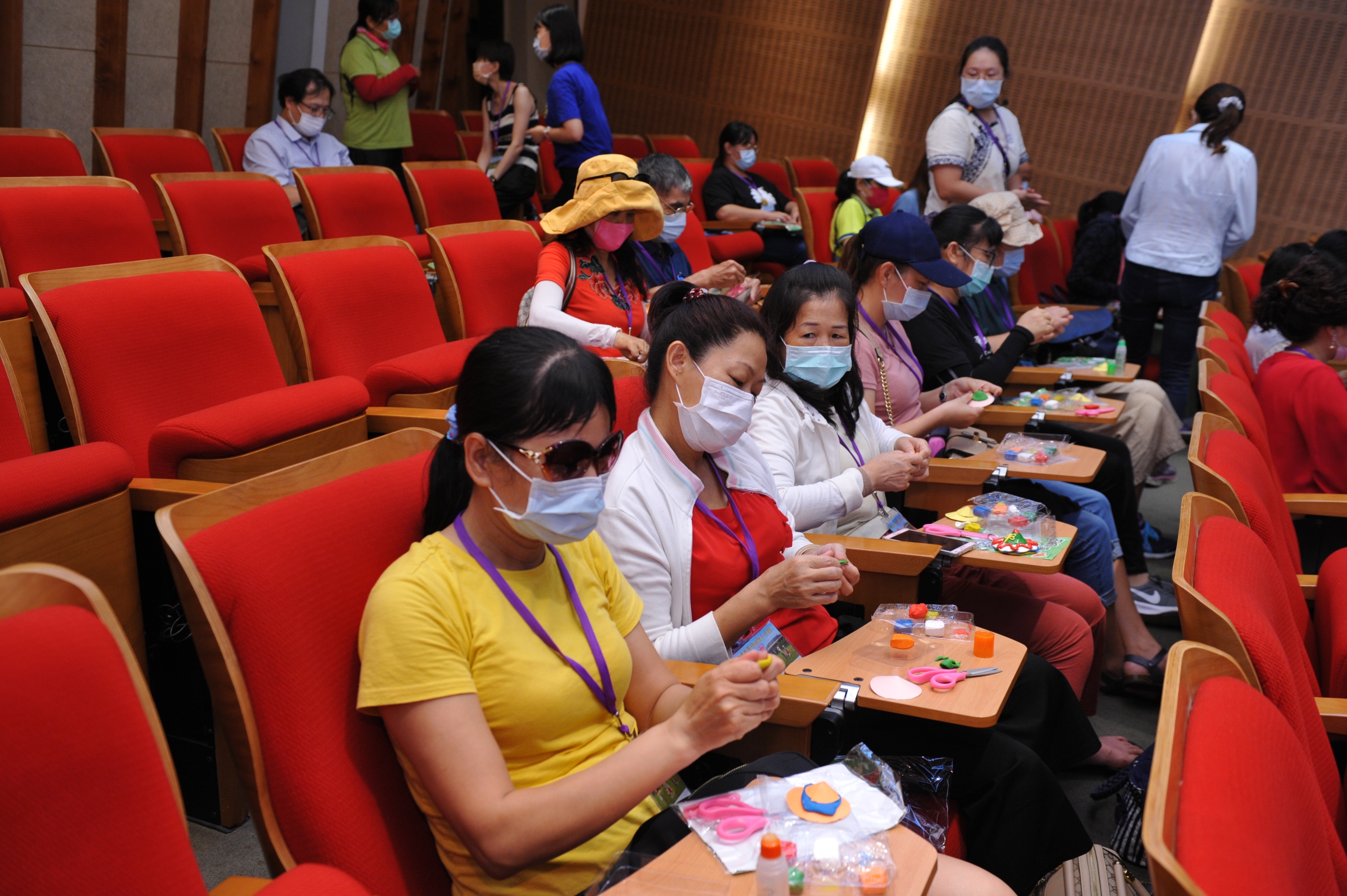 為了讓陸配姊妹及子女進一步領略客家文化的醍醐味,客家文化發展中心規劃精彩豐富的課程,在導覽老師詳細的解說之下,每個人發揮巧手與創意,製作了獨一無二的笠嬤鑰匙圈,深具紀念意義。花木蘭文化產業發展協會理事長宋怡蕙很高興地表示,很多陸配姊妹來自福建、廣東,和客家文化有些淵源,嫁到傳統客家聚落的美濃,算是一種特別的緣分,透過這次活動更加深入了解客家傳統生活形態,收穫非常豐富。