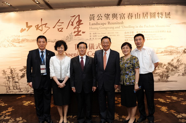 今天很高興與國立故宮博物院聯合歡迎浙江省代表團與大陸文化部代表團的嘉賓。這是趙書記第一次來台訪問,趙部長則是第三次,在此表示衷心歡迎。今天我們順利完成眾人期待的富春山居圖合璧展出,也藉此機會向所有的工作同仁以及贊助單位,表示慶賀與感謝。