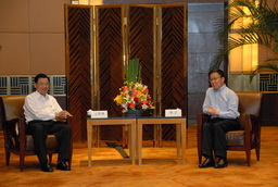 特別順便一提的是,郝市長提到台北花博會馬上就要開始,希望未來有更多的大陸客到臺灣來。台北的花博銜接上海的世博,從11月6日舉行到明年的4月25日。上海的世博在黃埔江兩岸,台北的花博則在基隆河兩岸,兩岸雙城變成一個連帶的關係。我希望台北花博辦得很成功,也歡迎更多大陸民眾到台北參觀,在此再度向韓市長表達感謝,並熱烈歡迎您到台北。