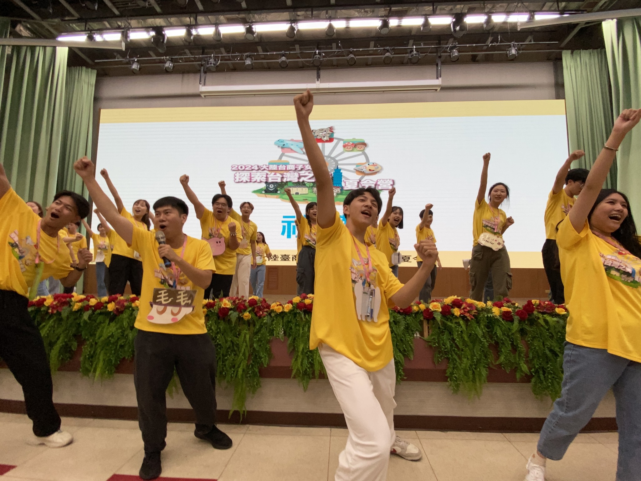 在第一梯次结业式上,各组学员先后上台团队合作表演,分享在营队里的收获,全体学员并以大合唱献给爸爸妈妈和辅导员,歌词中提到「谁让我经历风雨,尝尽了苦涩甜蜜,相聚和别离,都谱写成最美最好的歌曲,每一段旋律,都是我们的记忆」,为活动增添几分温馨。