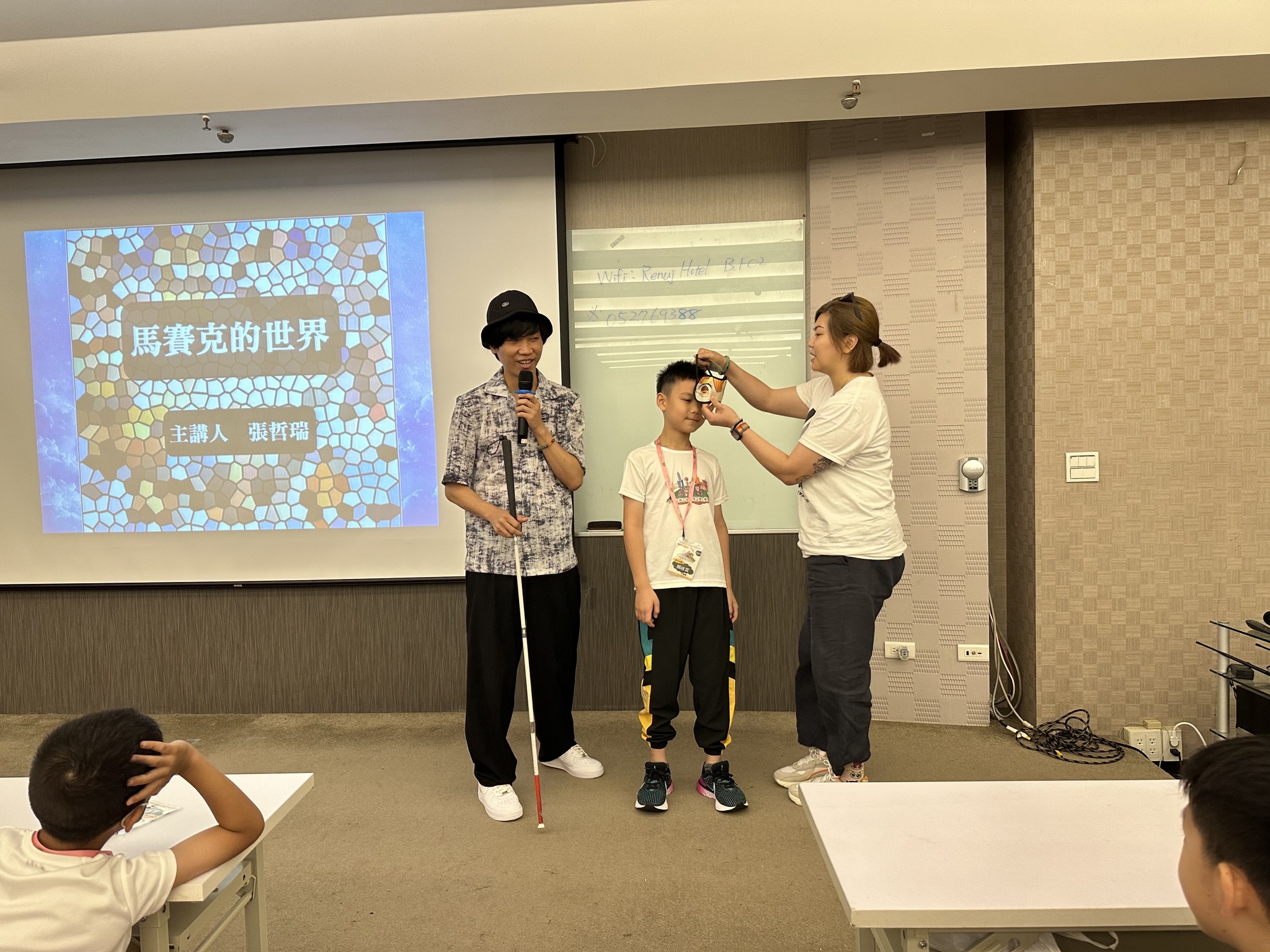 活动第2天(8月1日)一大早学员们朝气勃勃唱著国歌迎接国旗升起,接著进行品格教育课程,由视障歌手小花老师主讲【你是我的眼】,分享视障者的日常生活,期盼学员们能富有同理心及包容心,乐于成为每个视障朋友的眼。