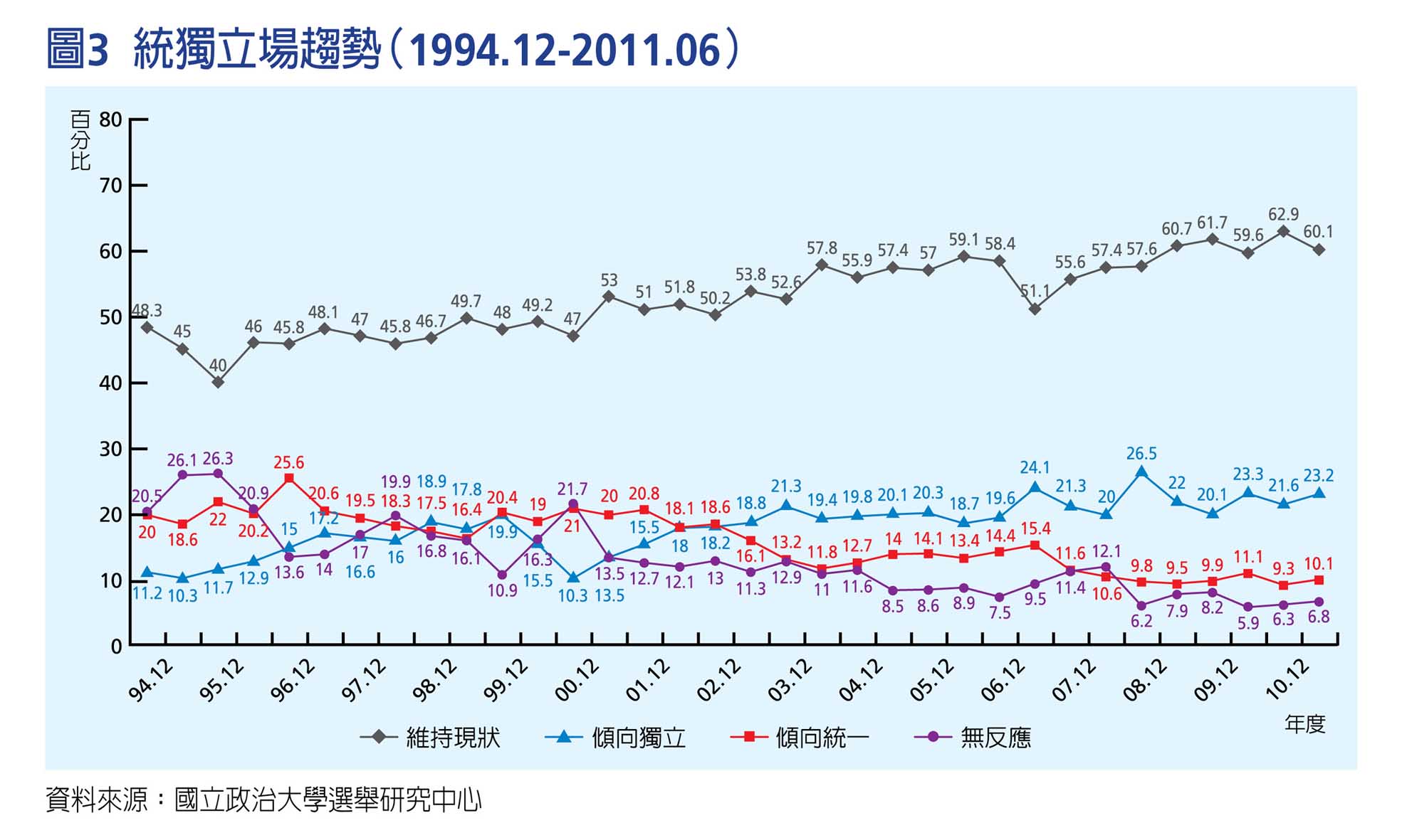 两岸关系与民意趋势:持续与变迁■文/陈陆辉(国立政治大学选举研究中心特聘研究员兼主任)、陈映男(国立政治大学政治学系博士候选人)《交流杂志101年2月号第121期(历史资料)》