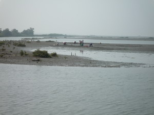 就在返回下榻途中,突然听到一阵嘻笑声,顺著声音望过去,只见一群渔民正在岸边整理文蛤。一位阿伯指著远方在蛤田里来回推机器的人说:「你要拍照,就应该去拍那个啦」。原来他查觉我们是城市乡巴佬,热心地解说,文蛤收成时,会以抽沙机将文蛤自沙土中吸出,经过滤、清洗后运上岸,由渔民透过筛网分出大小。愈大的文蛤当然价值愈高,筛选后经包装再送往市集贩售。