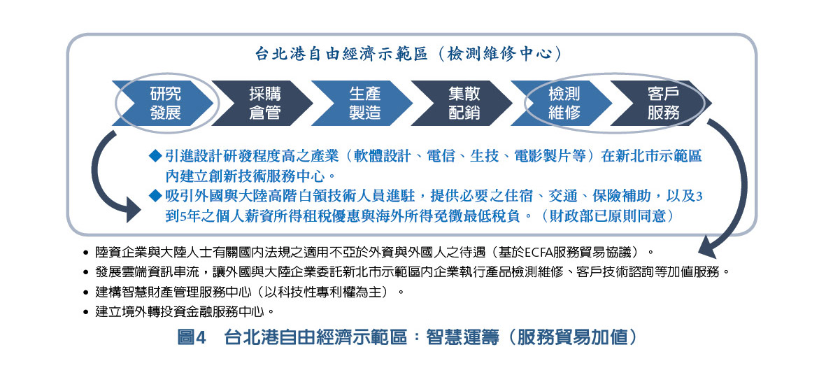 (三) 除了制造业外,服务业的开放、自由化示范,更是「自经区」成功的精髓应加速规划、推动,才能发挥综效