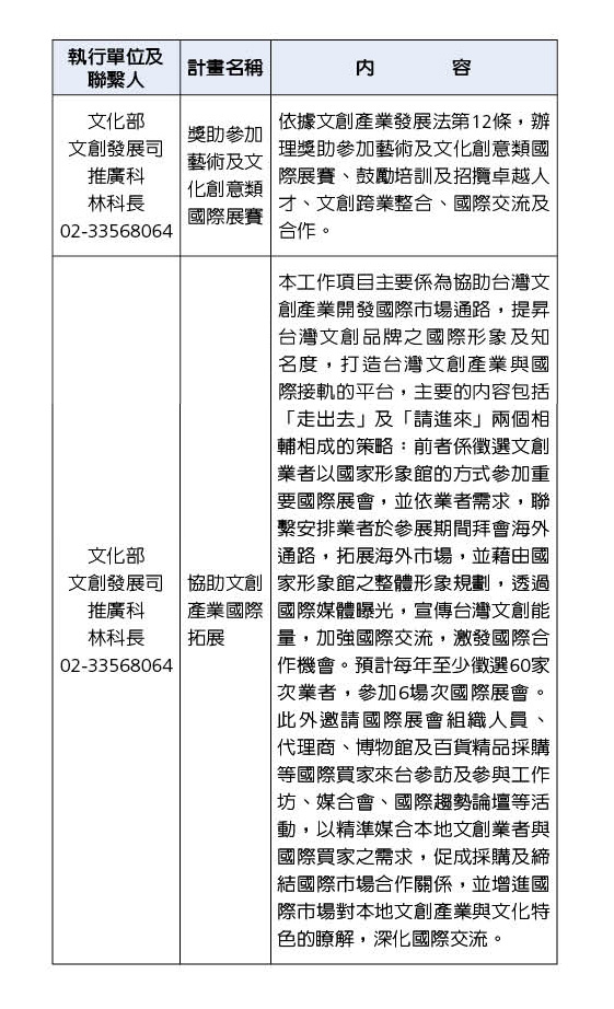 3. 协助文创人才及文创业者参与各类国际奖赛,另促进产业拓展国内外通路市场