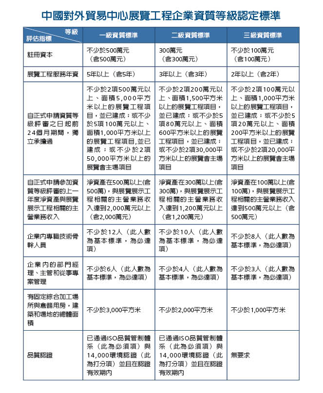 (一)中国展览馆协会展览工程企业资质等级标准