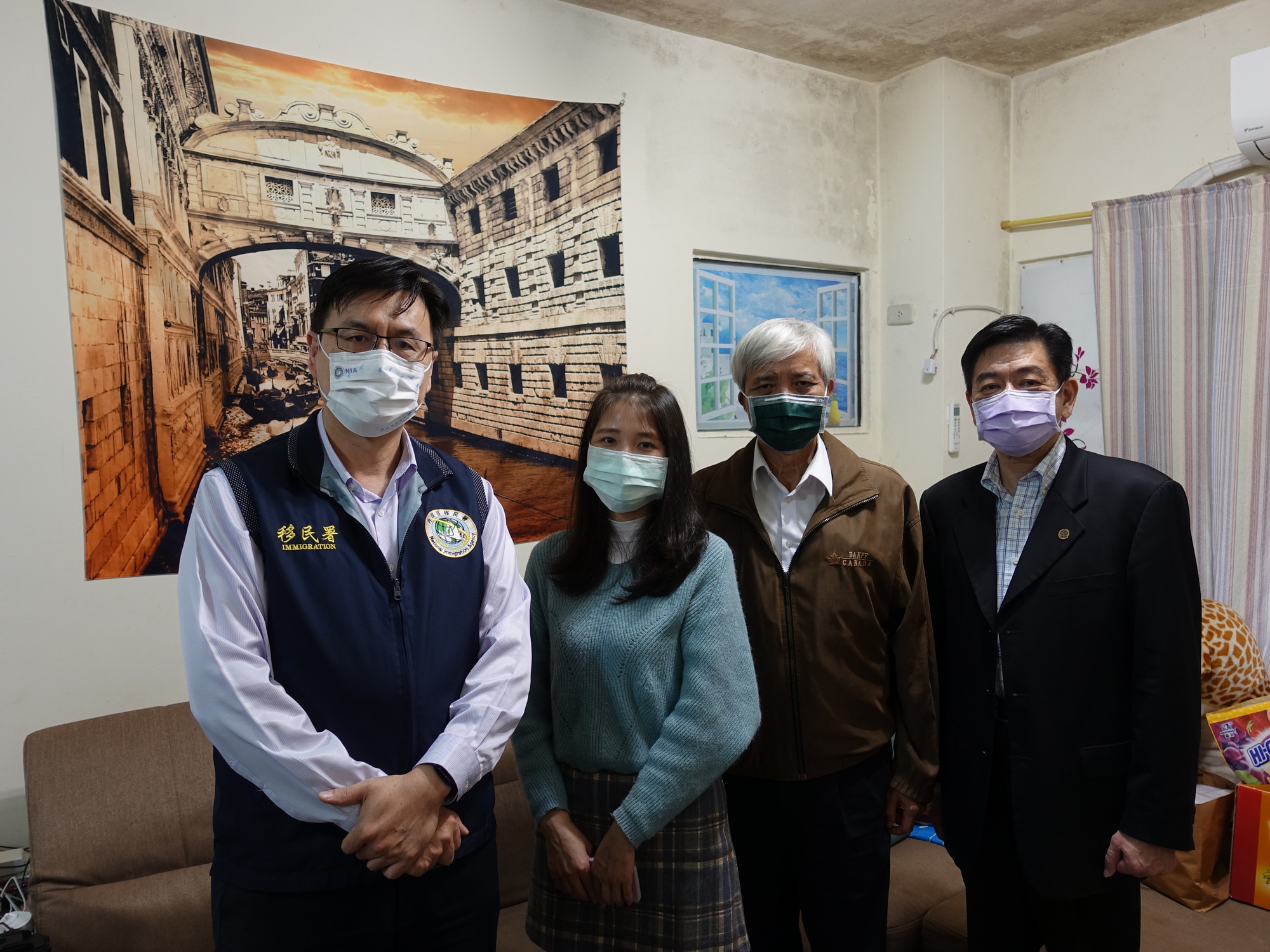 今日活动由海基会副秘书长高建智率队、法律处处长张峰青陪同,移民署北区事务大队大队长林泽谦、基隆市服务站主任毛兆莉共同参与。