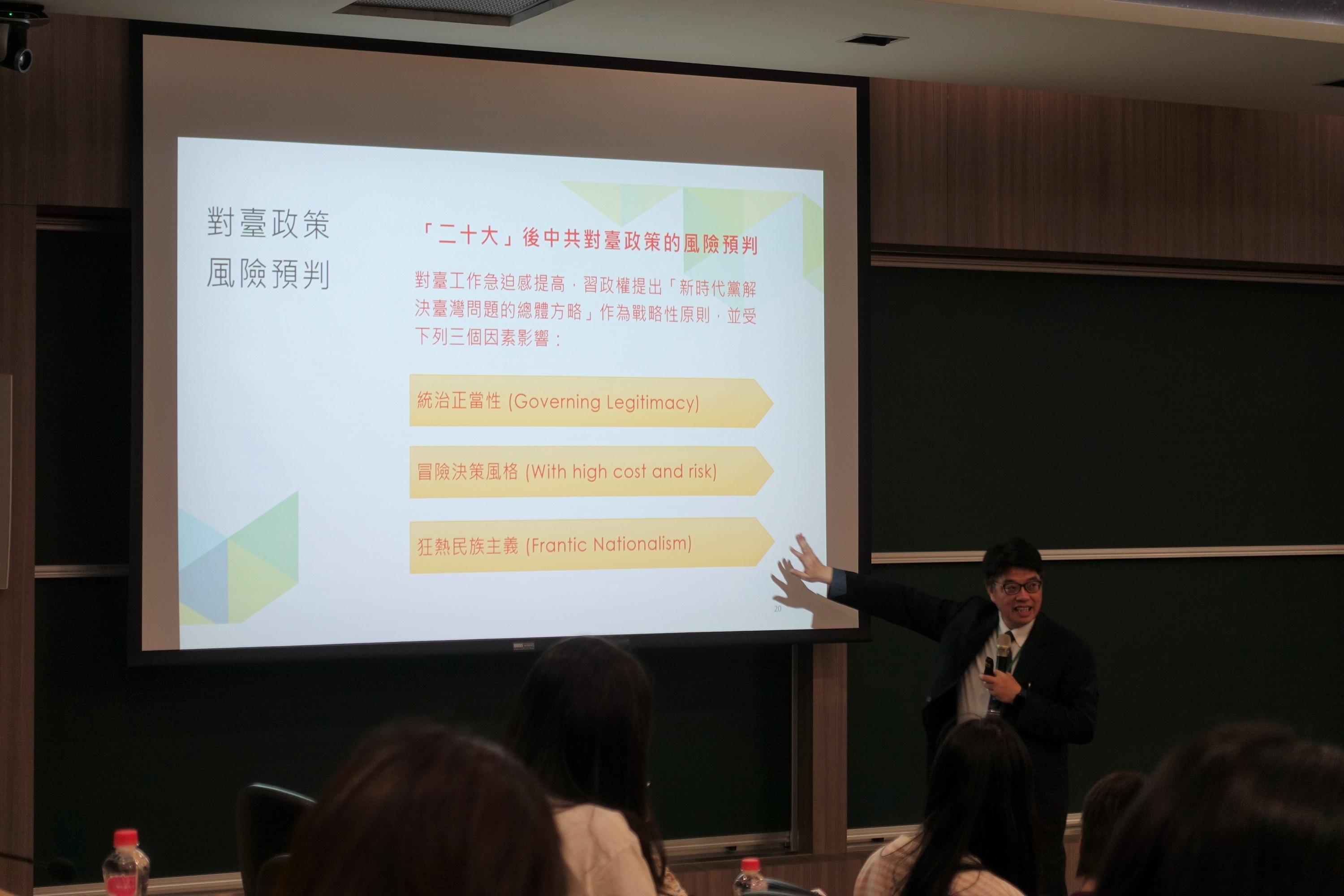 邱垂正说明当前我国大陆政策及两岸交流概况,提醒同学们须审慎看待两岸社会制度与价值差异,务实评估在中国大陆就学与生活的环境。他强调,多一分准备,就多一份保障,减少赴陆就学的适应成本与降低风险。