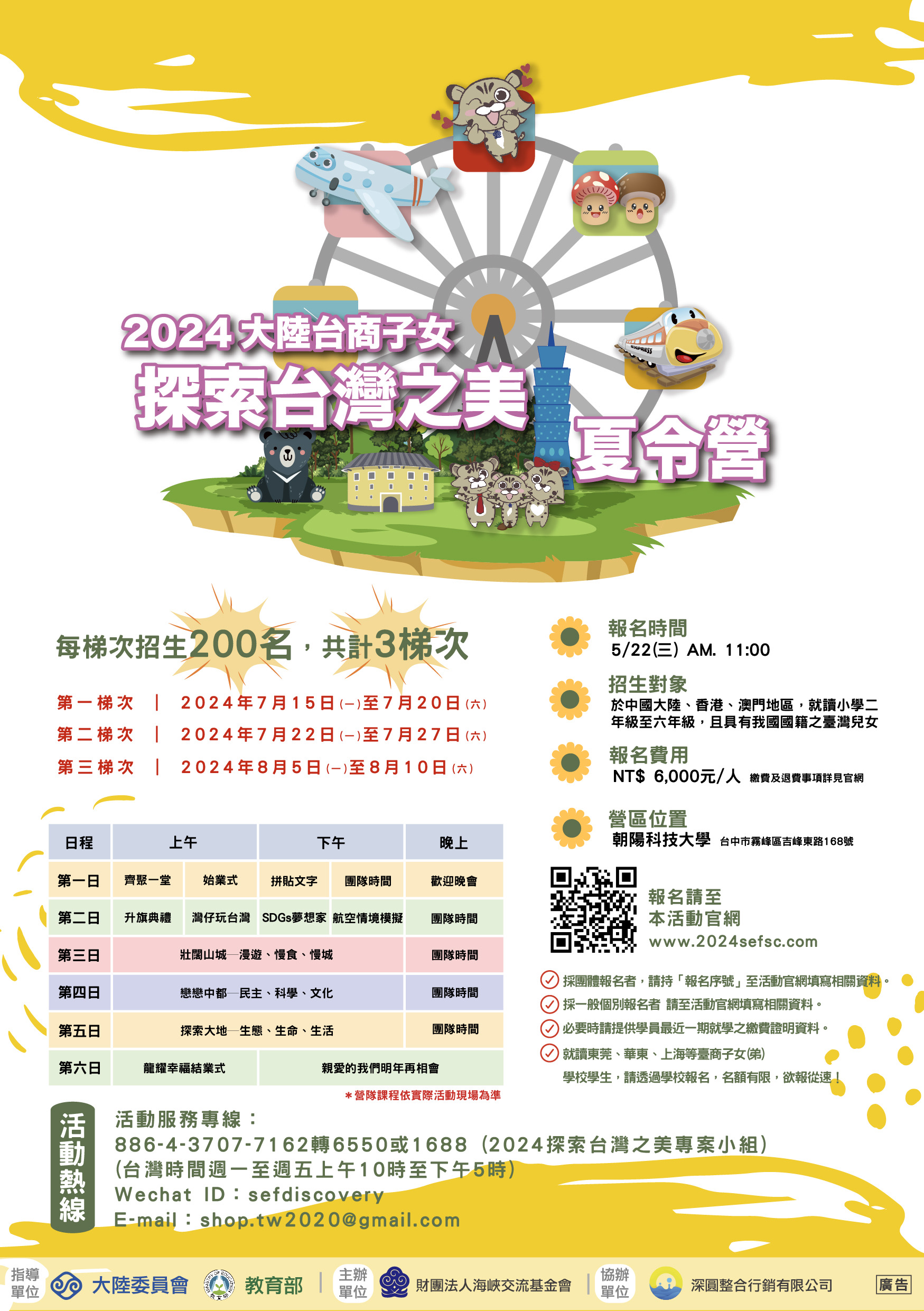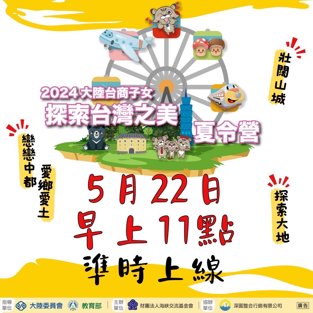 2024探索台湾之美夏令营,将于5月22号11点准时开放报名