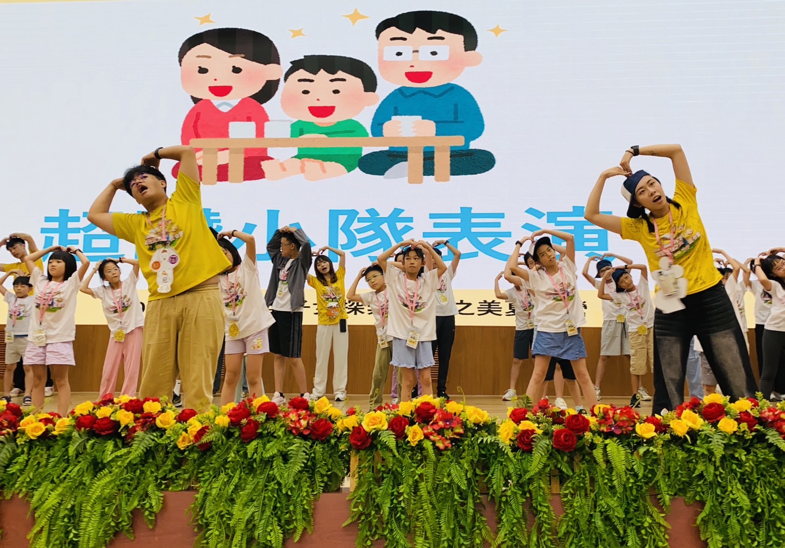 结业式以精彩回顾影片拉开序幕,有客家的风景、民主的轨迹、历史的残影,影片中学员们笑开的脸庞填满了每一格画面,队辅们的响亮口号响彻每个片段,让现场每个人感受到发自内心的共鸣。在辅导员带领下,十个小队粉墨登场,在家长的专注眼神中,展现精心练习的俏皮舞蹈。小朋友们也派出代表,上台真情告白,细数营队期间好玩好看的行程,并谢谢爸爸妈妈报名夏令营,下次也想继续参与。